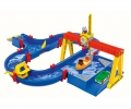 Ce circuit de jeu comprend 1 système de canaux avec bassin portuaire et rampe d'accès, 1 grue à containers, 1 roue à aube, 1 bateau porte-containers, 1 voiture amphibie, et 2 figurines (Wilma l'hippopotame, et Bo l'ours).