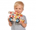 Ce coffret se compose de 100 pièces comprenant des lamelles de bois de hêtre perforées, des vis en plastique, des roues en caoutchouc et un tournevis pour construire des véhicules ou autre.