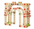 Ce coffret se compose de 315 pièces comprenant des lamelles de bois de hêtre perforées, des vis en plastique et un tournevis pour construire des bâtiments ou autre.