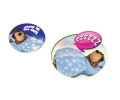 Michka porte un pyjama phosphorescent et un bonnet de nuit.