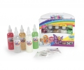 Ce kit de recharge comprend 3 tubes de gel de couleurs pailletées de 100ml (rose, argenté, doré), 2 tubes de gel de couleur phosphorescente de 100ml (vert, blanc) et 4 sachets d’additifs pour l'eau.