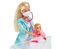 Ta poupée Steffi 29cm s'est engagée comme pédiatre ! Elle est accompagnée d'un bébé (5cm) qui a de la fièvre.