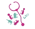 7 accessoires sont inclus pour prendre soin du bébé : 1 stéthoscope, 1 seringue... Steffi possède aussi un masque chirurgical de protection.